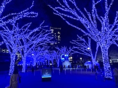代々木公園けやき通りから渋谷公園通りが青一色! Xmasにちなんで「青の洞窟Snow Man」をイルミネーションで作ったのだそう。NHKホール前が不思議な青い景色に変貌しているけれど、SnowManはどこ? このイルミネーションの飾りはLEDの普及によって、あちこちで見られますね。暖かくして冬の散歩もいいですよ。